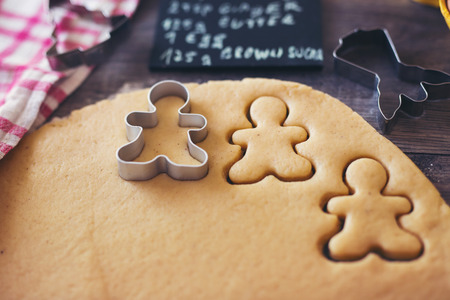- Remove and roll dough into balls and flatten into cookies or cut into gingerbread men